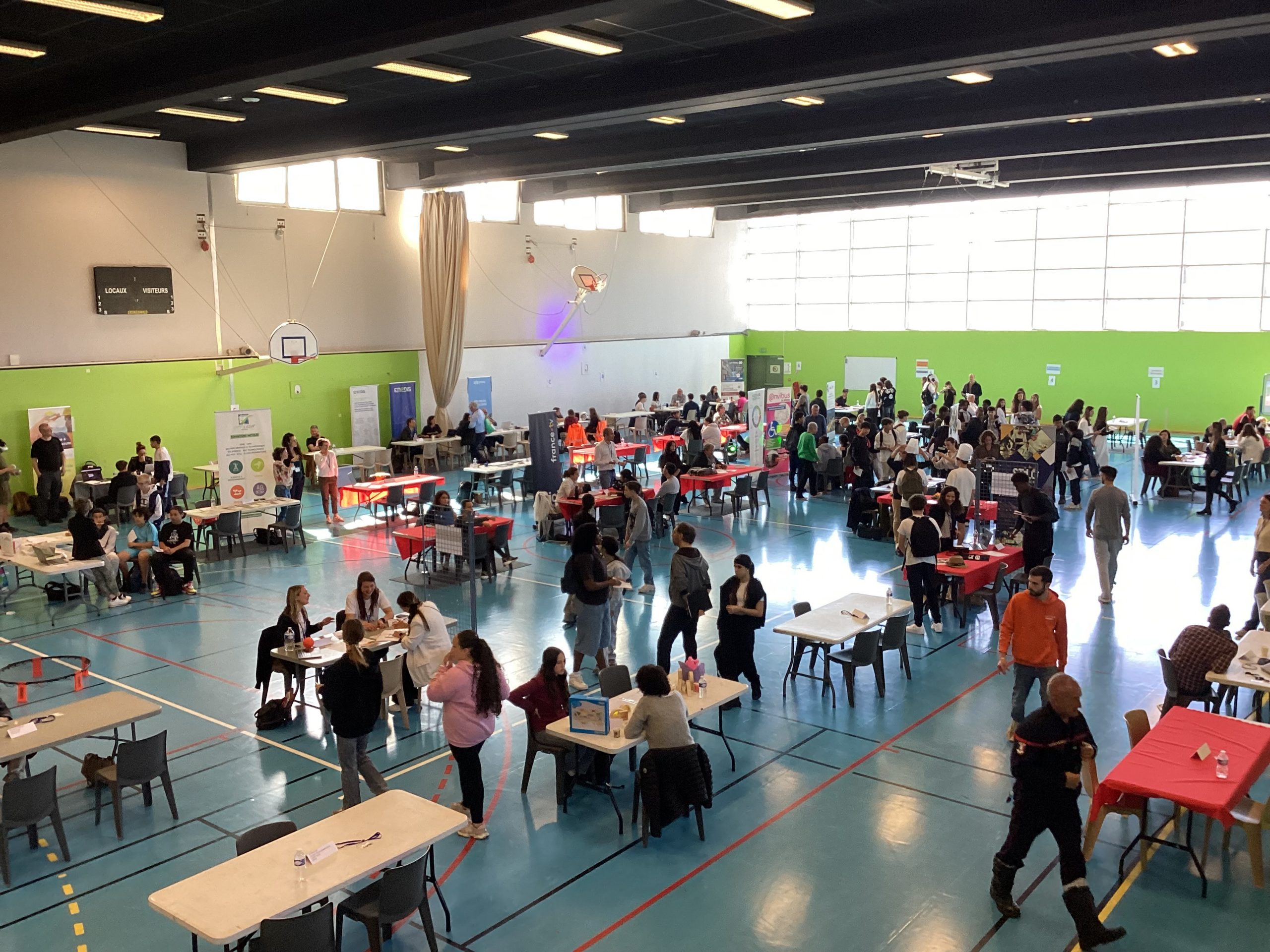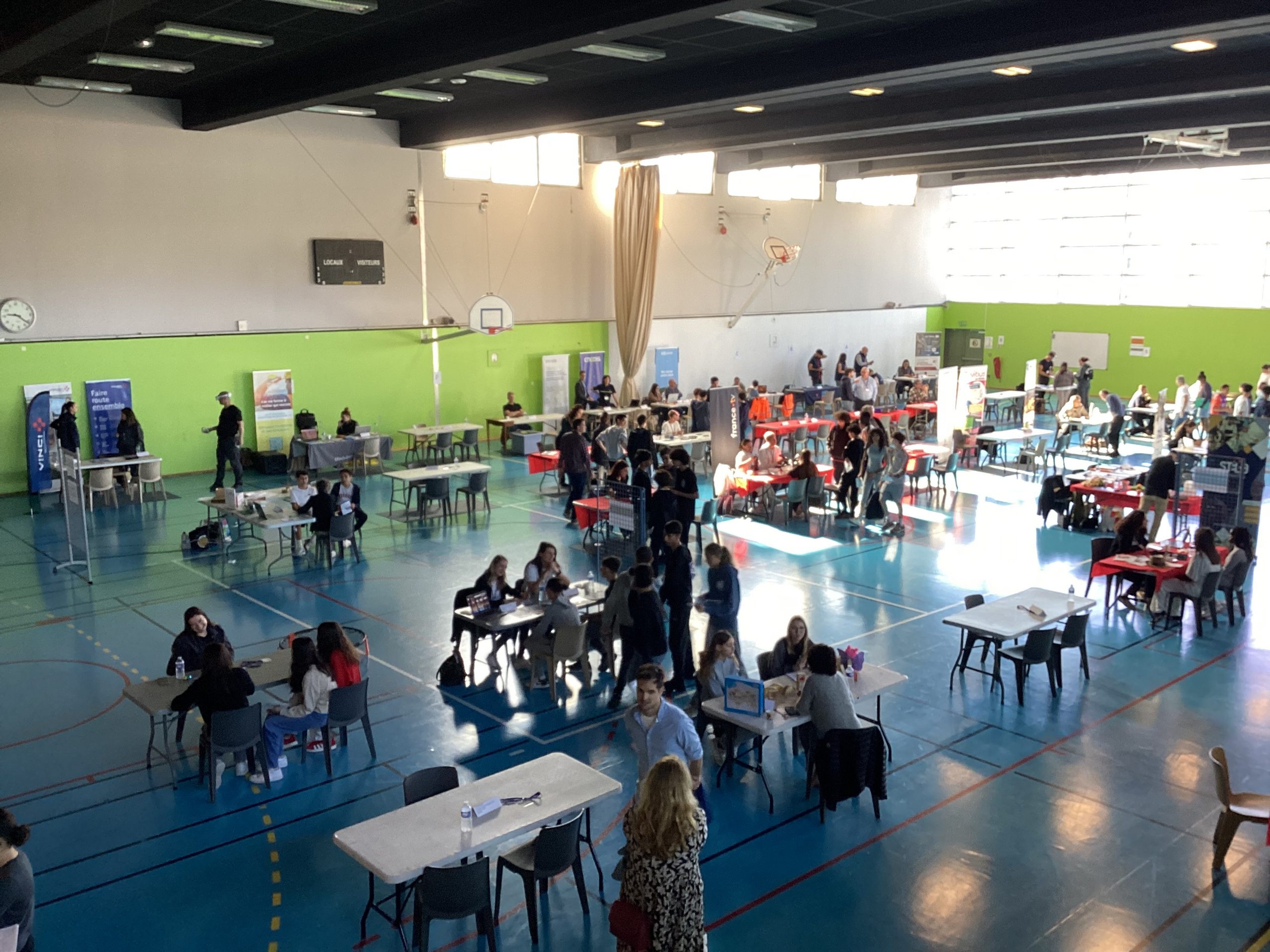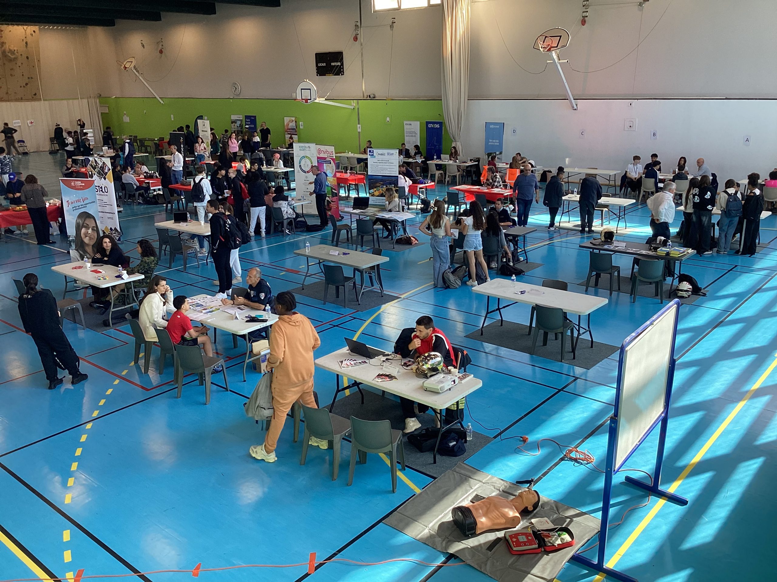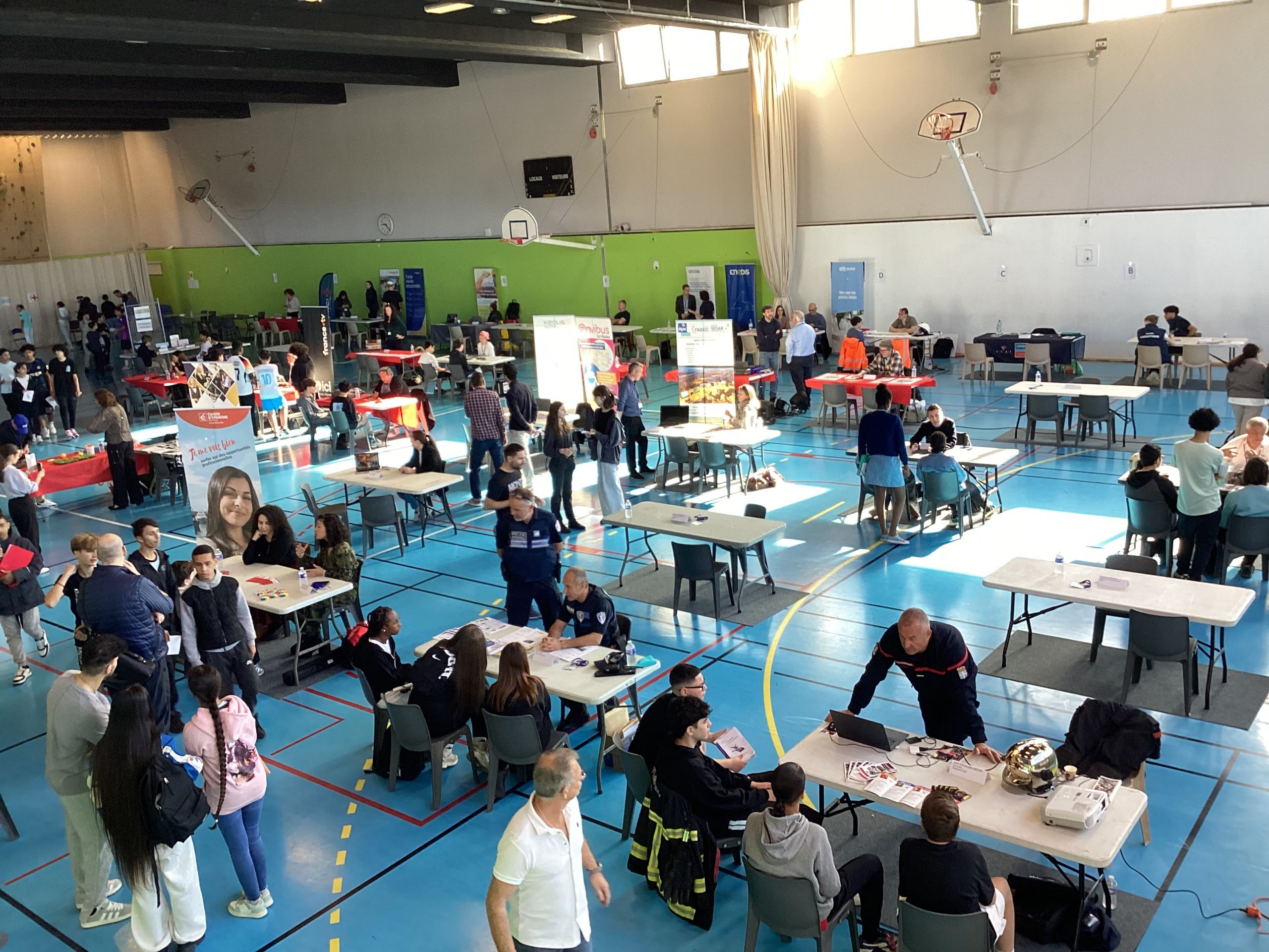 Le jeudi 24 avril au matin, un projet de belle ampleur a eu lieu au collège Pablo Picasso de Vallauris. Afin de parfaire le parcours préprofessionnel des élèves de 4ème ainsi que quelques élèves de 3ème, ceux-ci (au nombre approximatif de 200), ont été conviés à se rendre au gymnase de l’établissement pour aller à la rencontre de professionnels. Une soixantaine d’intervenants, regroupés par stands, et dont la variété des emplois proposés (des métiers de l’électricité à ceux de la vente et du commerce, de l’esthétisme à l’ostéopathie, du journalisme à l’architecture, du numérique à l’ébénisterie en passant par la gestion bancaire, la librairie, la police et les pompiers) permet de couvrir le très large spectre des offres possibles.