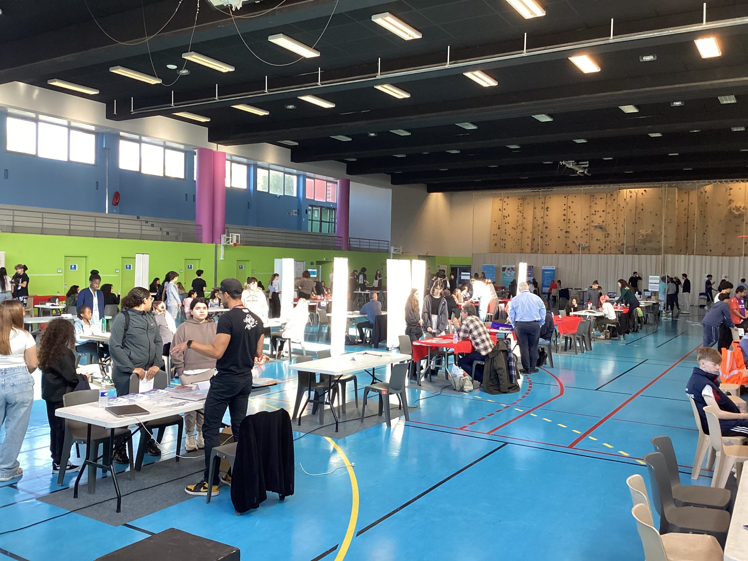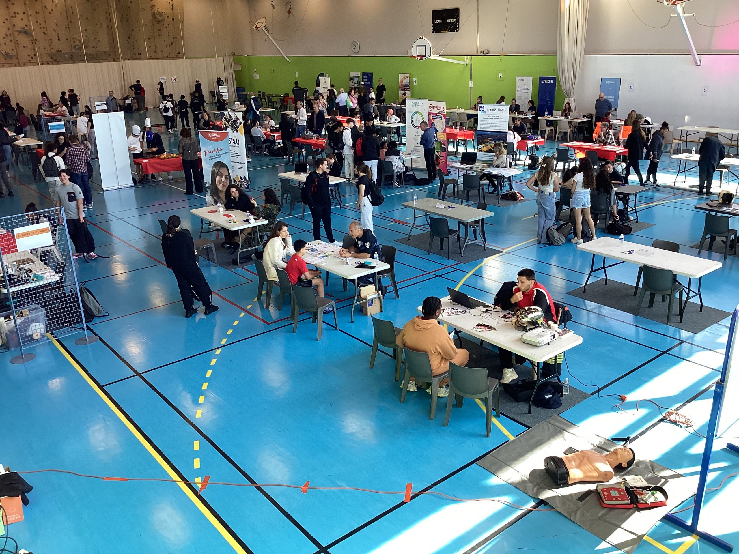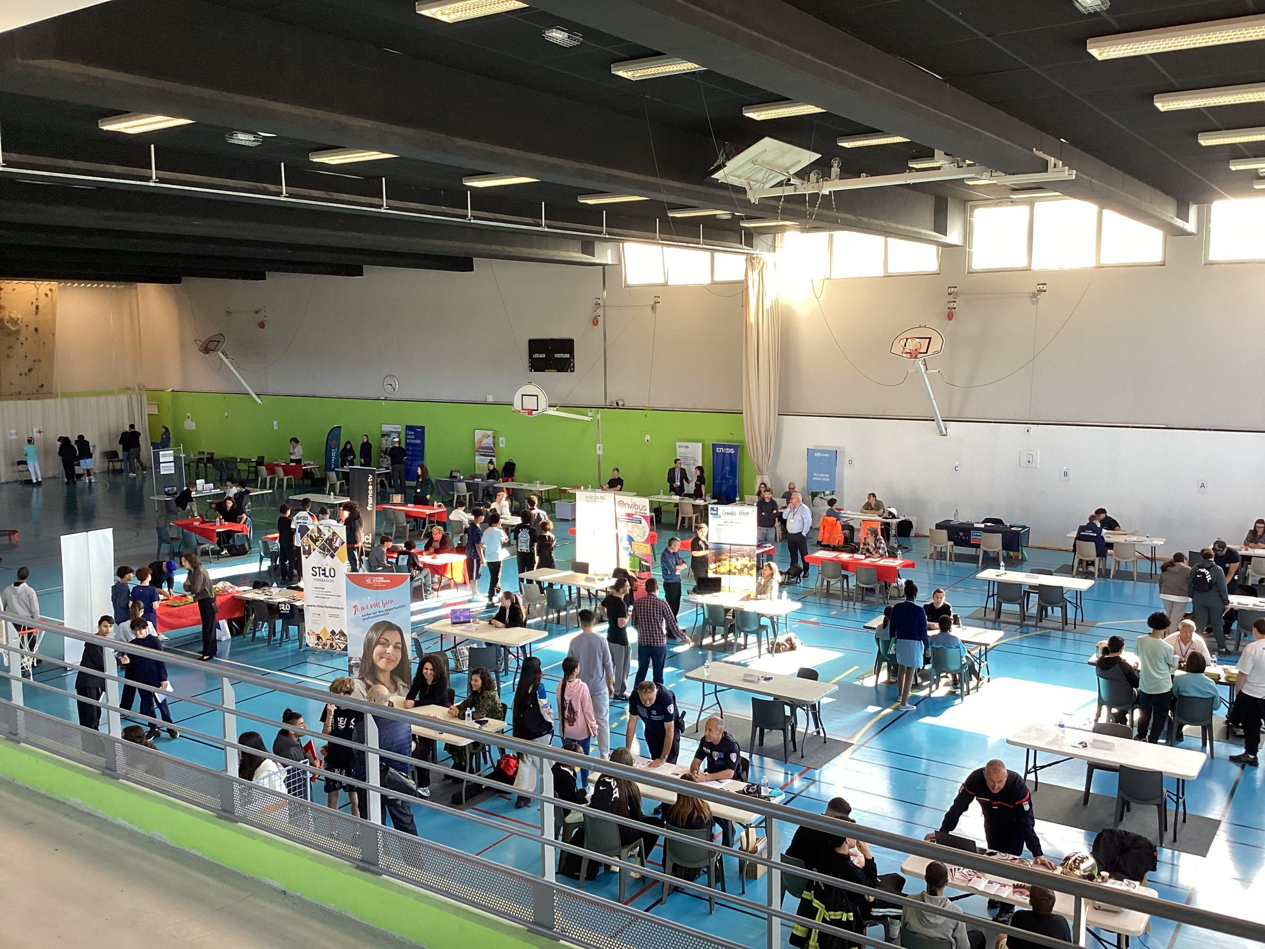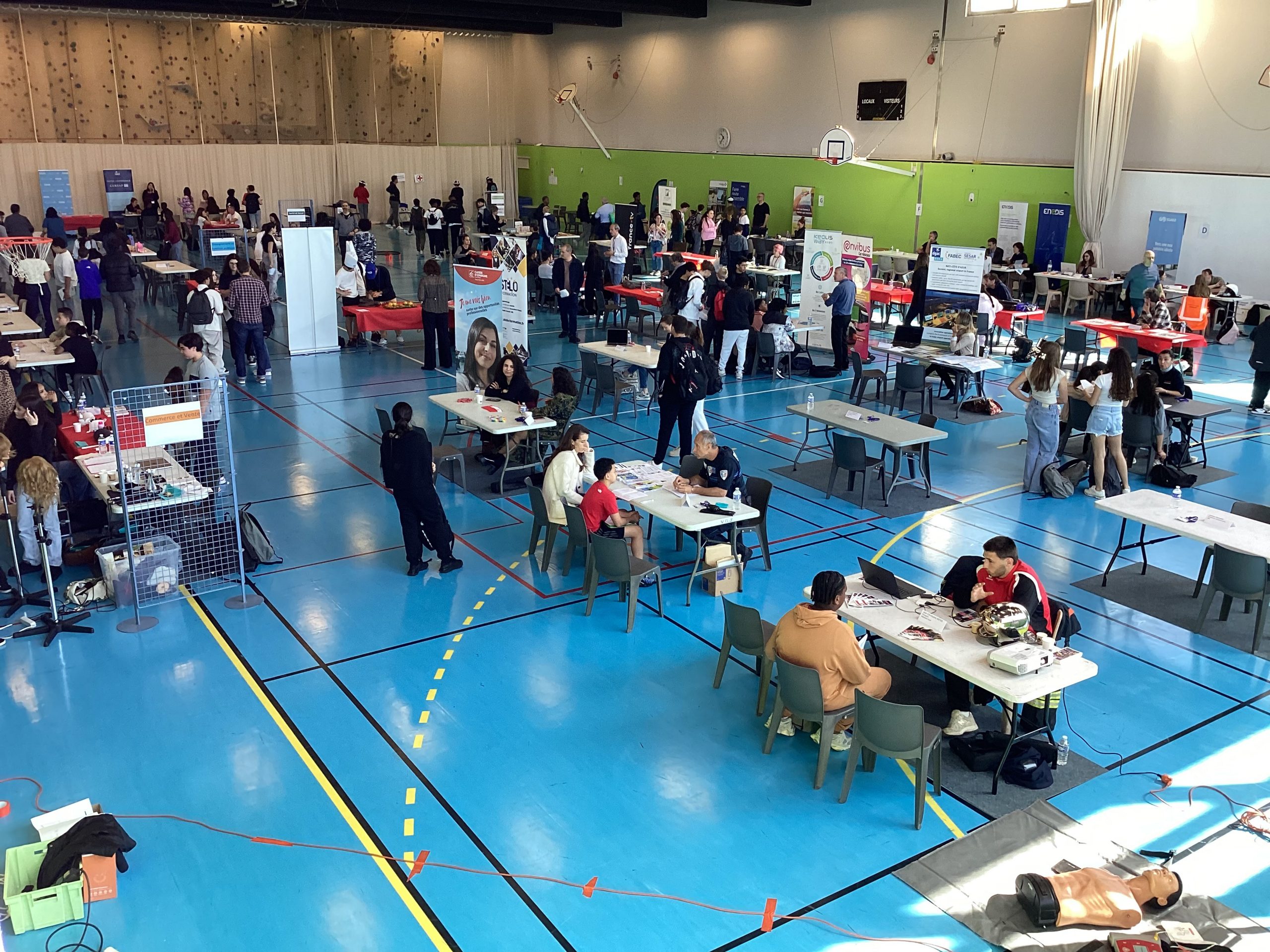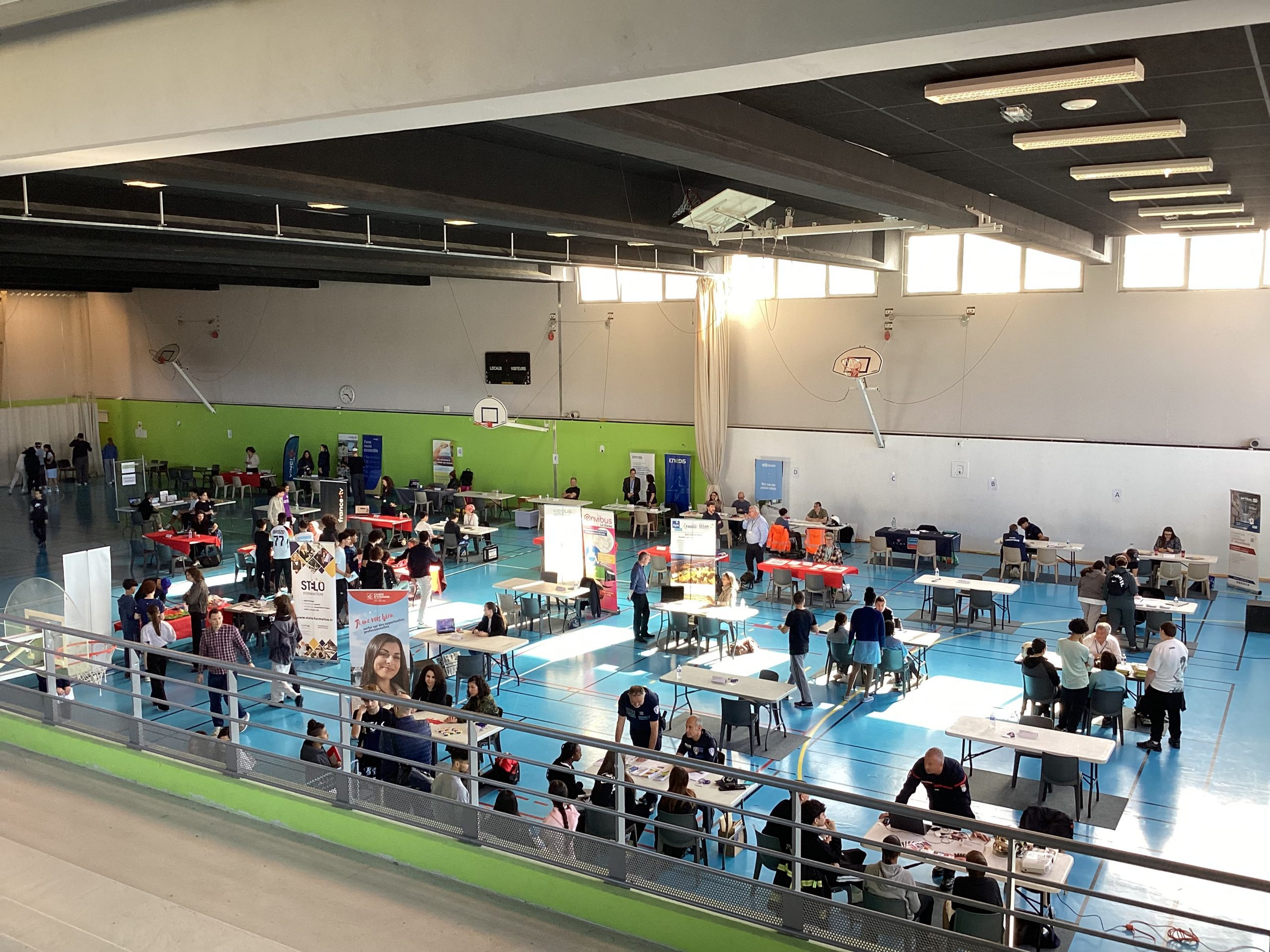 Le jeudi 24 avril au matin, un projet de belle ampleur a eu lieu au collège Pablo Picasso de Vallauris. Afin de parfaire le parcours préprofessionnel des élèves de 4ème ainsi que quelques élèves de 3ème, ceux-ci (au nombre approximatif de 200), ont été conviés à se rendre au gymnase de l’établissement pour aller à la rencontre de professionnels. Une soixantaine d’intervenants, regroupés par stands, et dont la variété des emplois proposés (des métiers de l’électricité à ceux de la vente et du commerce, de l’esthétisme à l’ostéopathie, du journalisme à l’architecture, du numérique à l’ébénisterie en passant par la gestion bancaire, la librairie, la police et les pompiers) permet de couvrir le très large spectre des offres possibles.