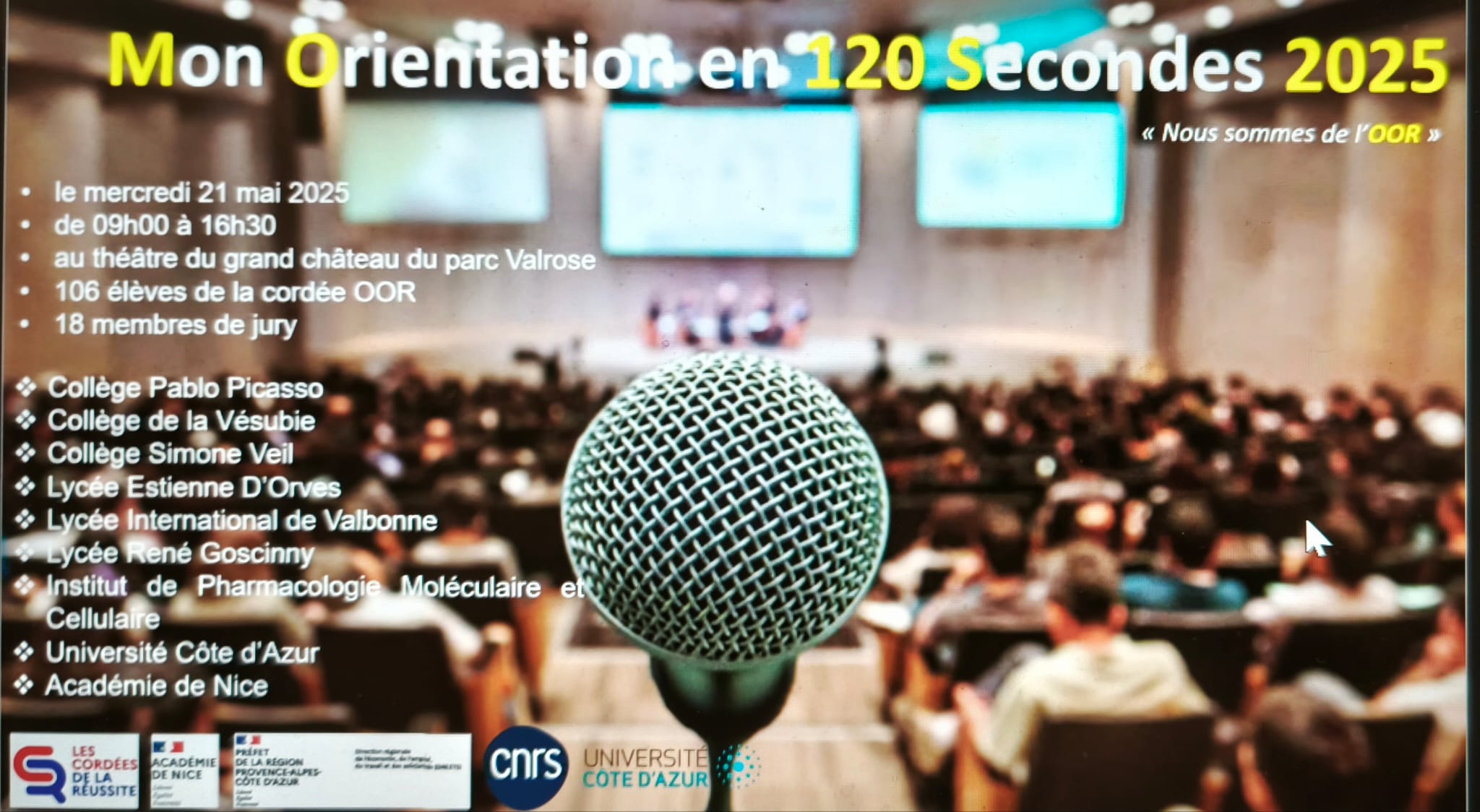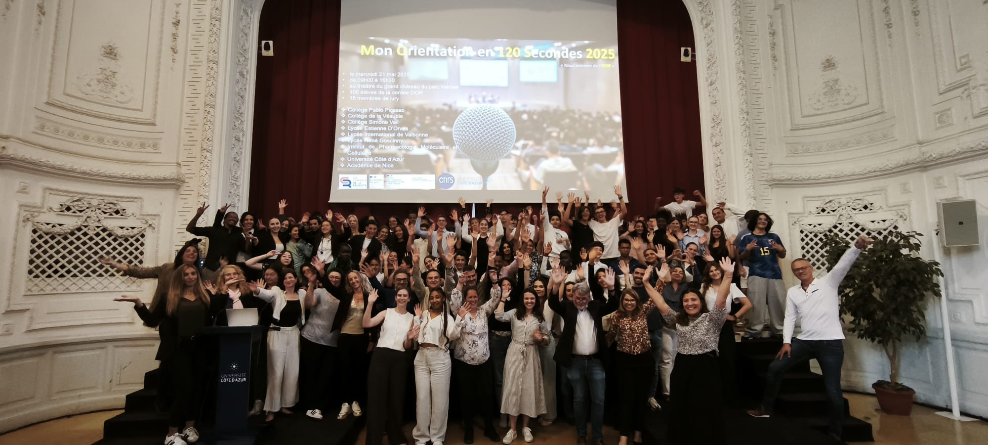 Mercredi 21 mai, les 17 élèves des Cordées de la réussite de notre établissement ont eu le plaisir de se déplacer au campus de Valrose pour leur concours d’éloquence. Au terme d’une année de préparation, il s’agissait de présenter “mon orientation en 120 secondes” devant 18 membres d’un jury composé de chercheurs, mais aussi devant une salle comble qui a unanimement salué les prestations qui gagnent en qualité d’année en année. De nombreux élèves ont été récompensés pour la valeur de leurs propositions.